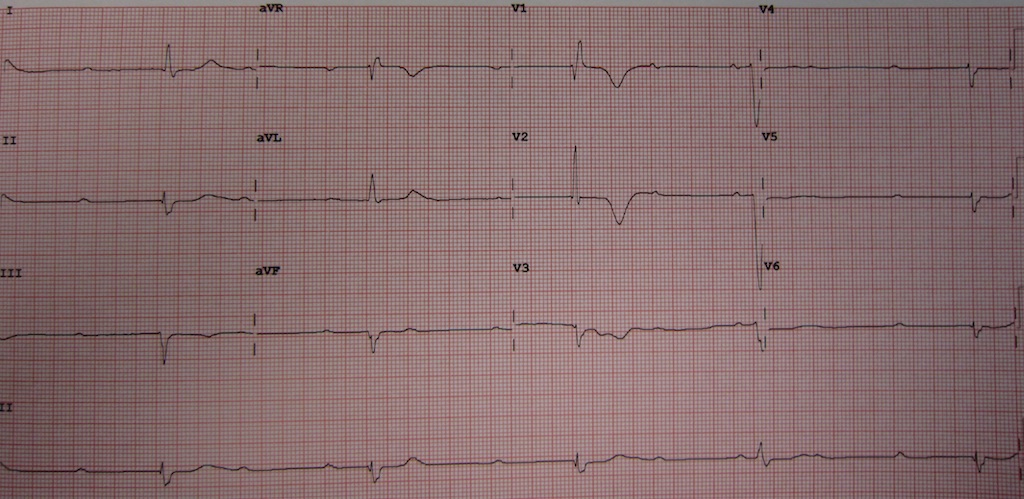 A 51 year old lady is being assessed at the pre-op clinic for an upcoming hysterectomy. She is a non-smoker, with no past medical history except for peri-menopausal bleeding. She takes norethisterone and tranexamic acid. A routine ECG is performed (shown). What is the most likely diagnosis ?